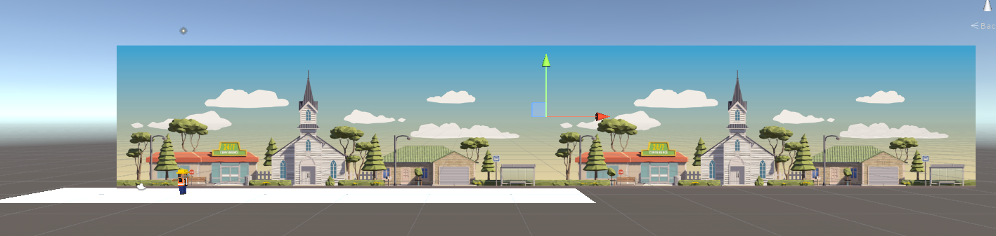 위의 사진을 보면, 배경화면 오브젝트가 2개의 동일한 이미지를 붙여놓은 형태를 띠고 있다.