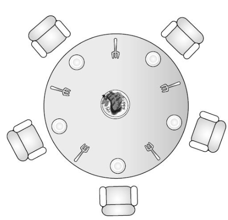 - 5명의 철학자는 생각과 식사를 반복한다.