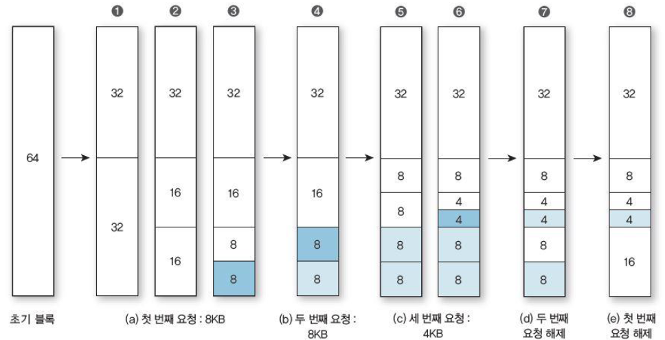 - 연속 메모리 할당: 고정 분할, 가변 분할(동적 분할)