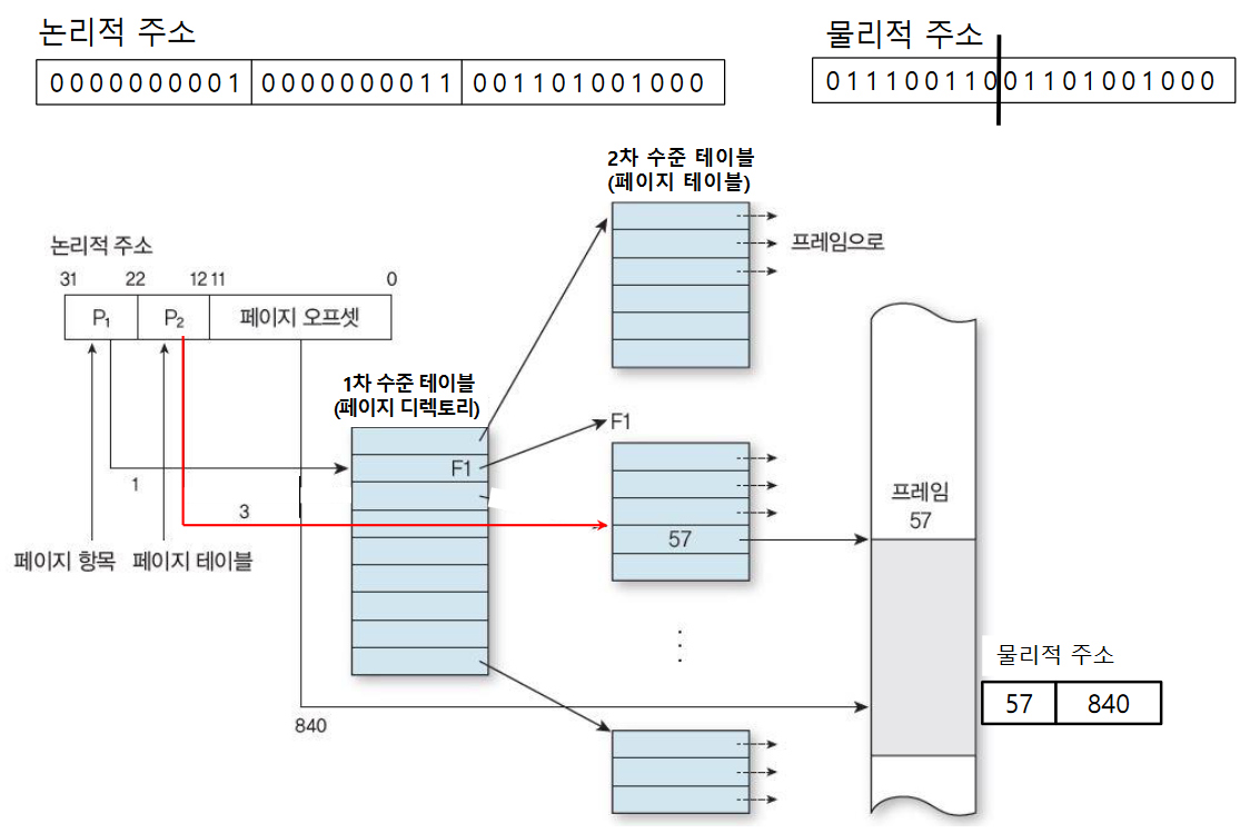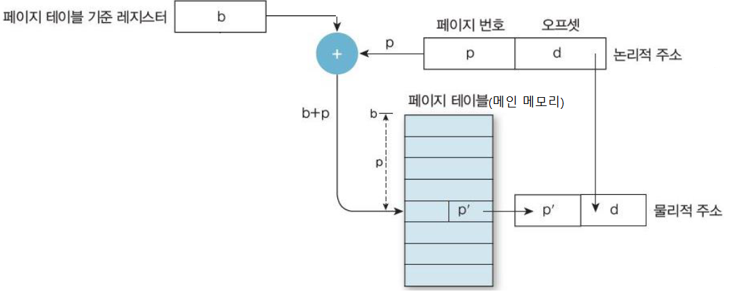 프레임 번호(f) + 페이지 오프셋(d') == 실제 메모리 물리 주소