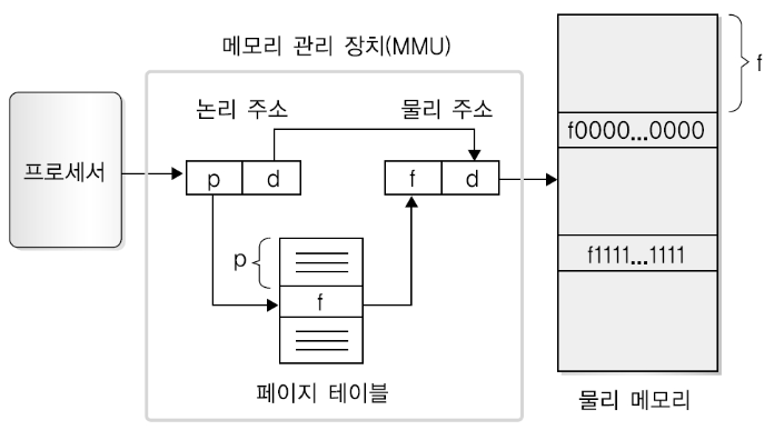 메인 메모리에 프로세서의 계산 값을 저장하거나, 필요한 정보를 불러오기 위해서는 논리적 주소를 물리적 주소로 변환하는 과정이 필요하다.