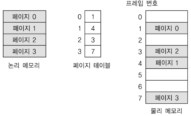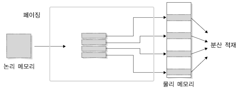 페이징은 비어있는 페이지 프레임 아무 곳에나 배치한다.