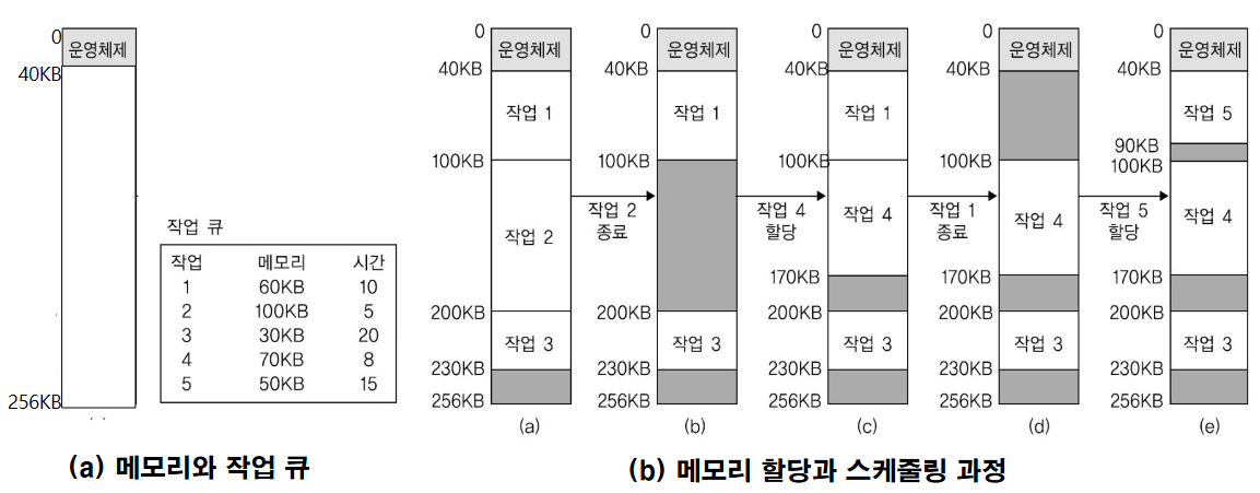 할당받은 공간보다 프로세스 크기가 더 작으면, 내부 단편화 문제가 발생할 수 있다.