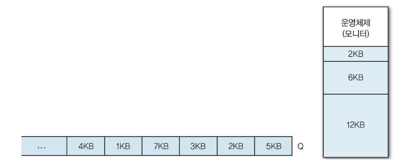 메모리에 할당될 프로세스들은 선입선출 큐를 사용해 관리한다.