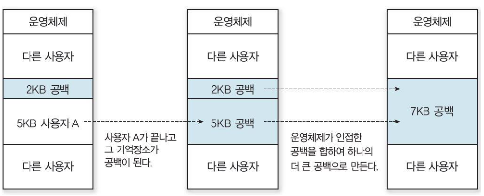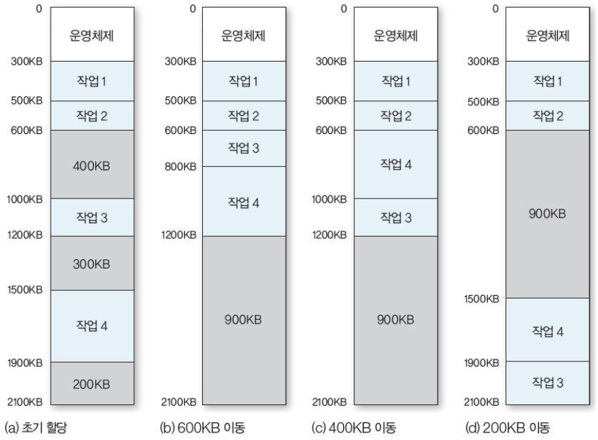 단순히 기다리거나 압축하여 더 큰 공간을 생성할 수 있다.