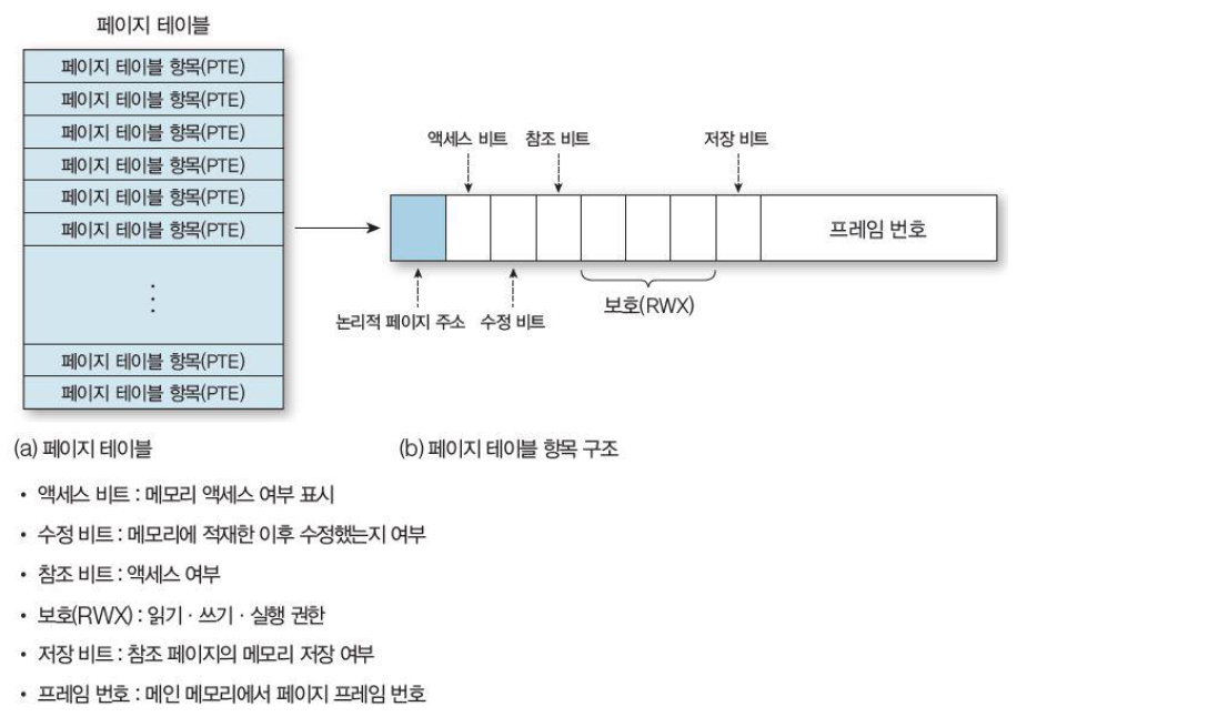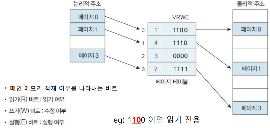 페이지 테이블 항목에 읽기/쓰기, 읽기 전용 등을 정의하는 비트를 둔다.