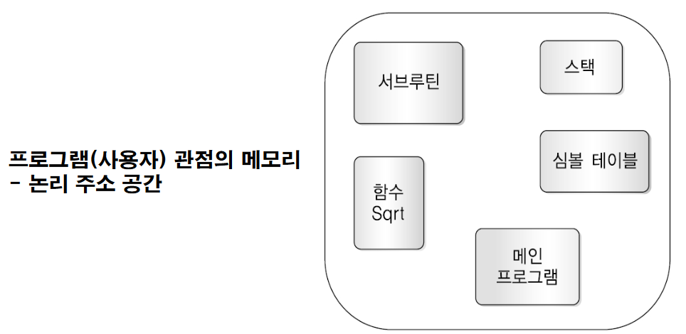 논리적 주소 공간은 실제 메인 메모리의 주소 공간과 무관하게 0부터 시작하는 프로그램 코드 상에서의 메모리 주소 공간이다.