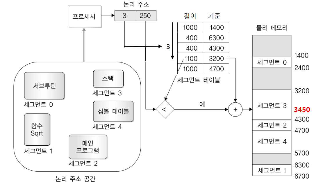 세그먼트 테이블의 각 항목은 해당 세그먼트의 메인 메모리상 주소와 길이 정보를 지닌다.