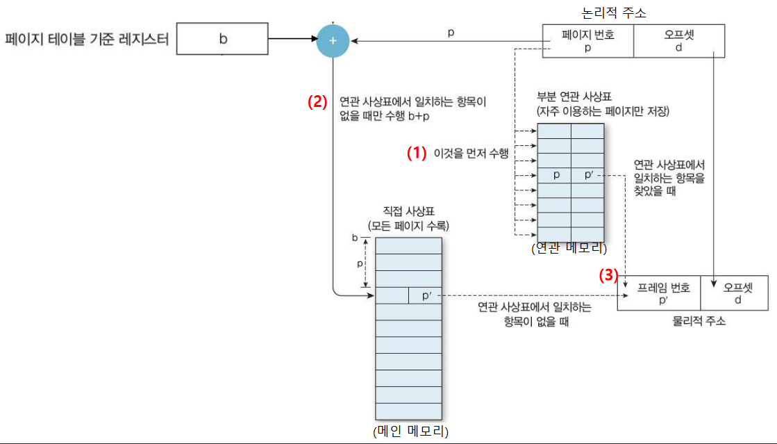 또한 메모리 워드 참조를 위해 세그먼트 테이블 참조, 페이지 테이블 참조, 목표하는 워드 참조까지 총 3번 메인 메모리에 접근해야 한다.