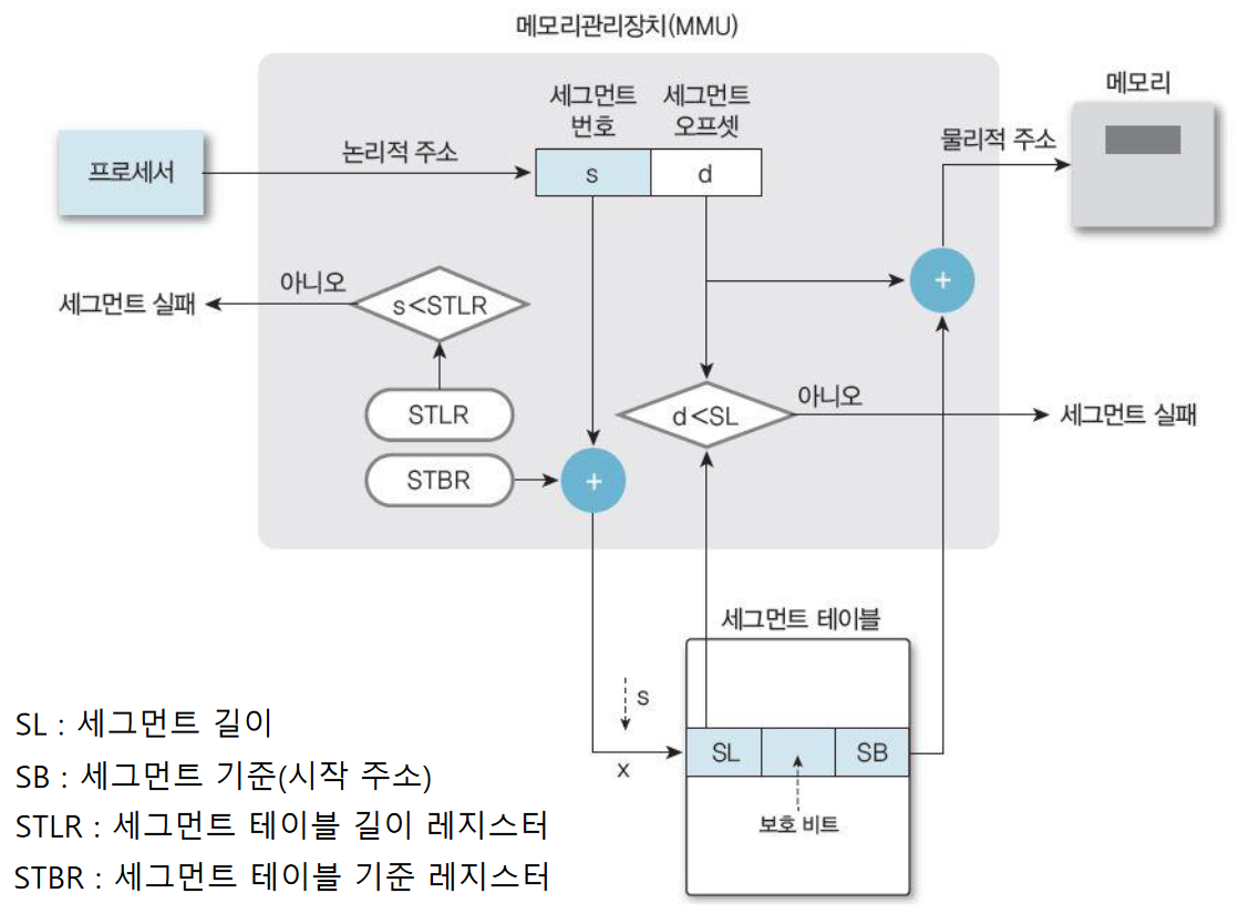 특정 프로세스가 실행 중일 때, 세그먼트 테이블 기준 레지스터(STBR: Segment Table Base Register)가 프로세스에 대한 세그먼트 테이블 시작 주소를 가진다.