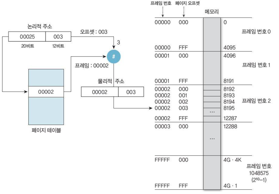 32Bit 시스템이라면 논리적 공간의 크기가 2^32바이트이므로 4GB가 된다.