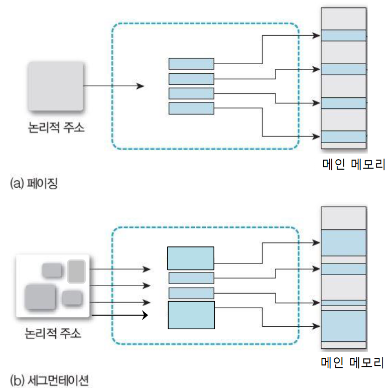 메모리의 사용자 관점을 지원하는 비연속 메모리 할당 방법이다.