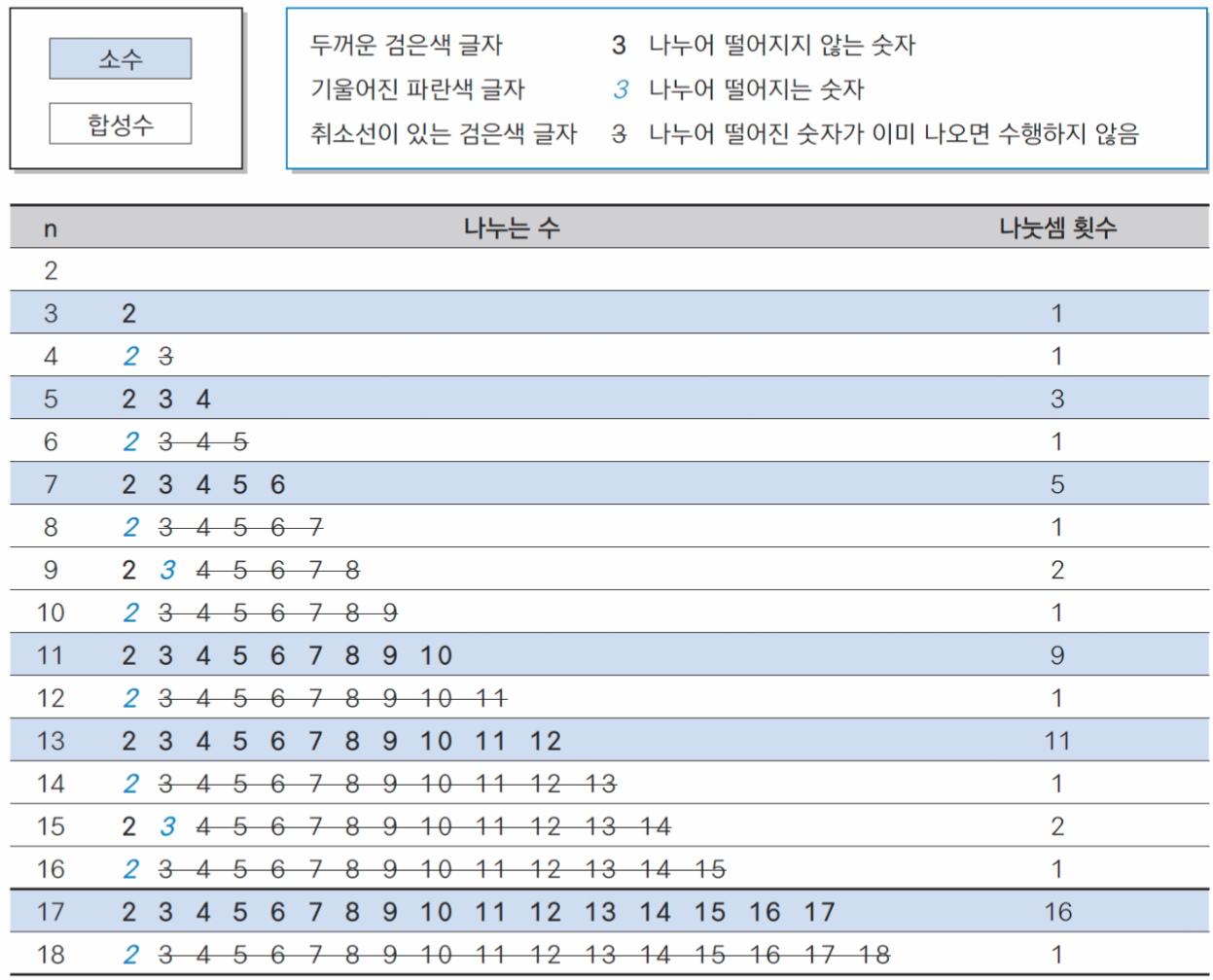 이를 정리하면, n의 제곱근 이하의 어떤 소수로도 나눠 떨어지지 않는 자연수 n은 소수이다.