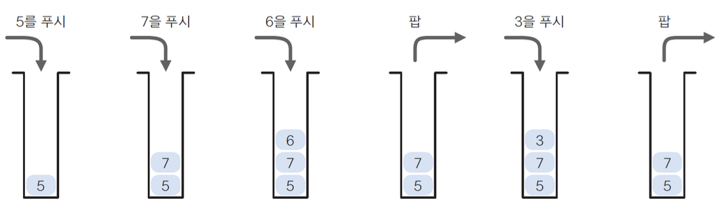 후입 선출(LIFO: Last In First Out) 방식에 따라 데이터를 입출력한다.