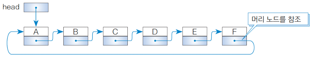 연결 리스트의 꼬리 노드가 다시 머리 노드를 가리키는 원형을 띄고 있는 구조의 리스트이다.
