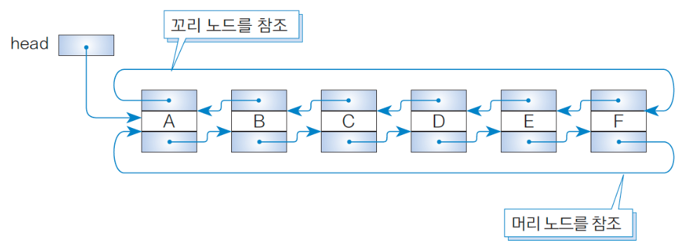 원형 리스트와 이중 연결 리스트를 결합한 구조의 리스트이다.