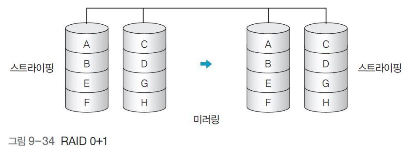 스트라이핑(RAID 0의 빠른 속도)과 미러링(RAID 1의 안정적인 복구 기능)을 혼합한 방법.