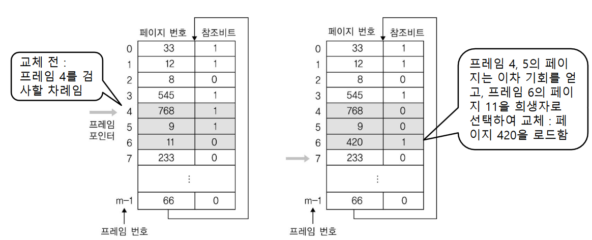 이때 비어있는 프레임이 없는 경우, 메모리에 적재되어 있는 페이지를 교체해야 한다.