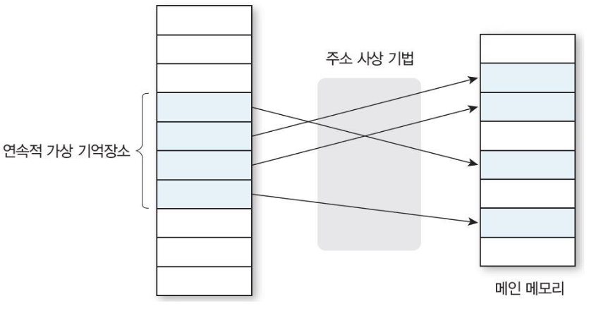 가상 주소 공간 상의 연속적인 주소가 꼭 메인 메모리에서도 연속적일 필요는 없다.