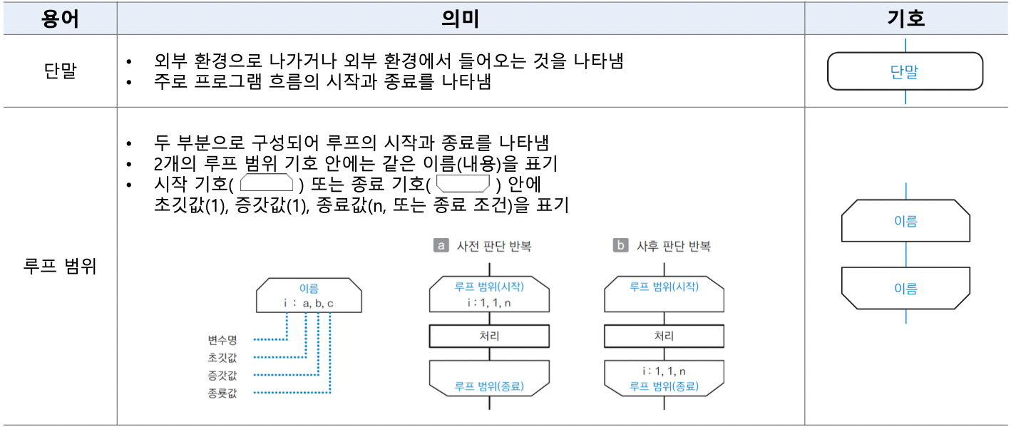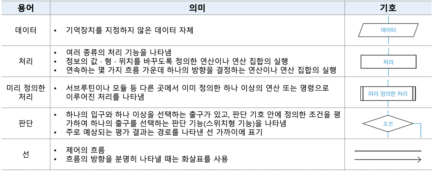 순서도는 다양한 기호들로 구성되는데, 이는 다음과 같다.
