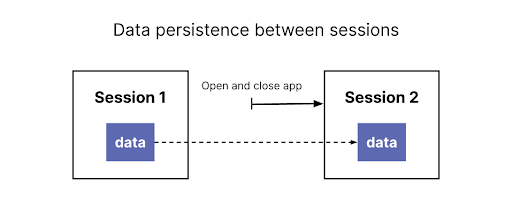 다른 예시 2개(오랫동안 플레이하는 게임과 워드 프로세싱 애플리케이션)는 일반적으로 다중 세션 경험입니다. 사용자들은 한 세션을 진행하는 동안 진행사항을 저장하고, 중단한 지점부터 다시 복원하기를 원합니다. 다음은 세션 사이의 데이터 지속성에 대한 예시입니다.