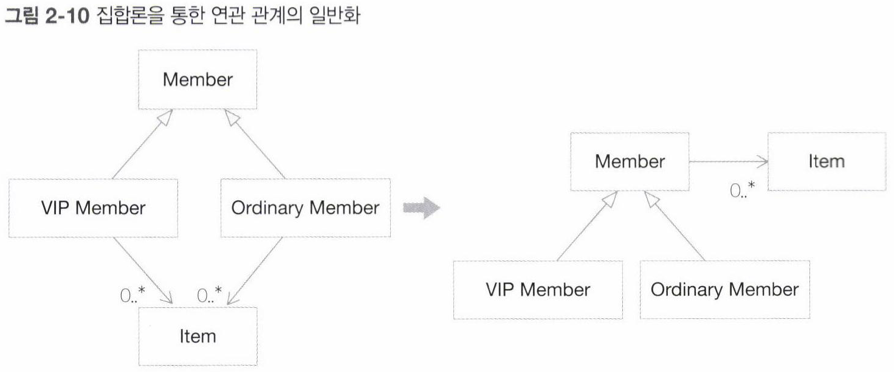 집합론 관점에서 일반화 관계를 만들면, 연관 관계를 단순하게 만들 수 있다.