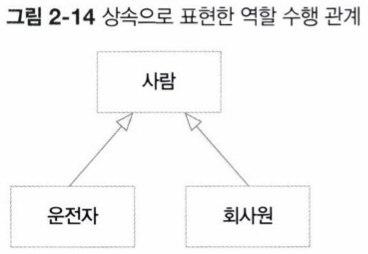 아래 그림 2-14는 사람이 운전자와 회사원의 역할을 수행하는 것을 표현한 클래스 다이어그램이다.