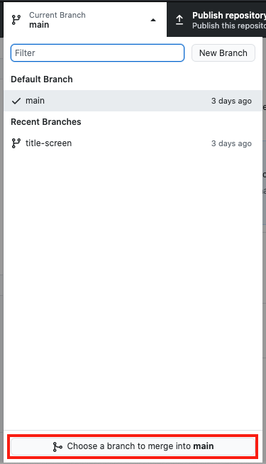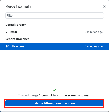 타이틀 스크린(또는 다른 기능)이 완성되었다면, 이제 실험 브랜치를 메인 개발 브랜치에 병합할 준비가 되었습니다.