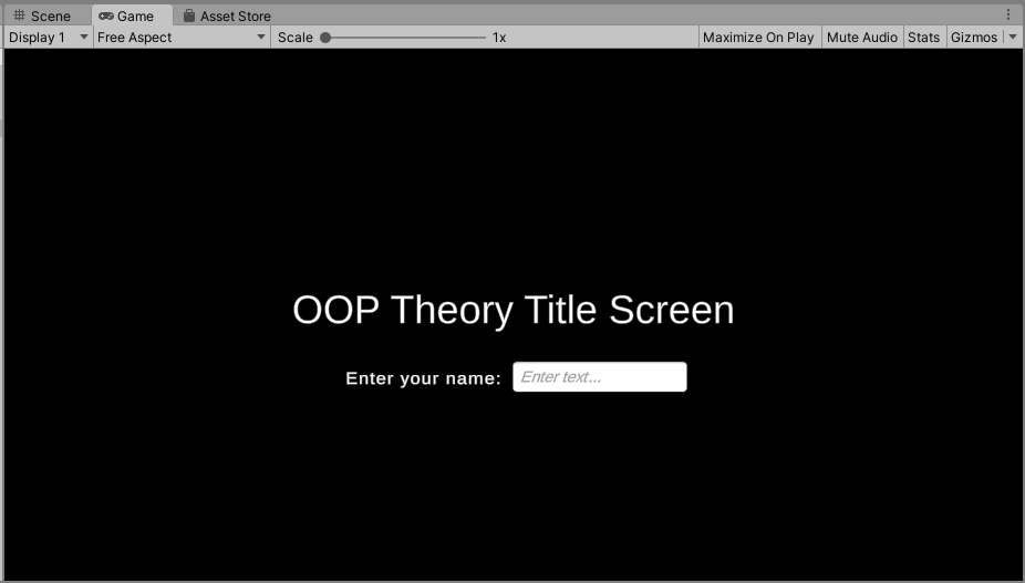 2. 새로 생성한 브랜치에서 여러분의 타이틀 스크린을 개발하세요. 여러분의 프로젝트 내에서 과제에 대한 간단한 타이틀 스크린을 제작합니다. 여기에는 프로젝트 콘셉트와 관련이 있어야 하며, 아래의 예시와 같이 매우 간단해야 합니다.