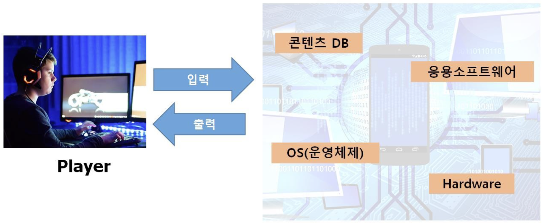 게임 플레이를 목적으로 하는 HW, SW, DB로 구성된 시스템.