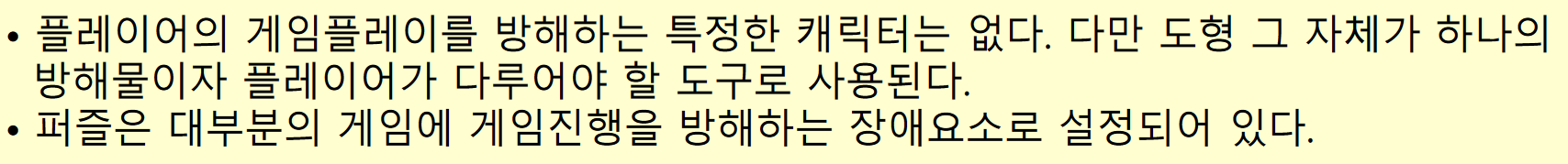 퍼즐 게임의 특징은 다음과 같다.