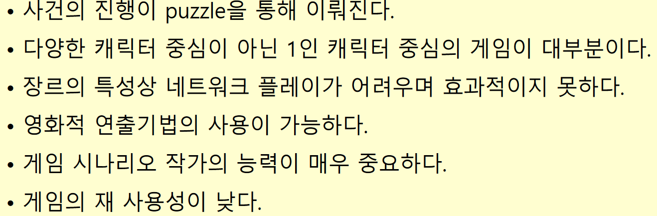 어드밴처 게임은 경쟁적인 요소, 시뮬레이션적인 요소가 상대적으로 약한 장르이다.