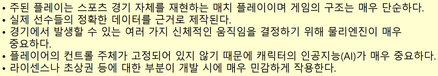 스포츠 게임의 특징은 다음과 같다.