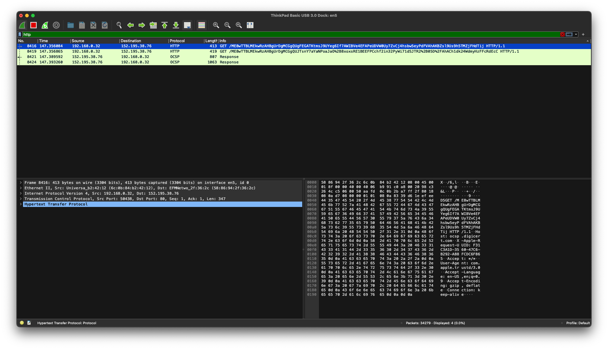위는 HTTP 패킷만 출력되도록 필터를 적용한 것이다.
