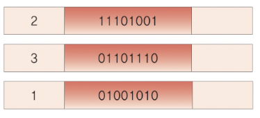 만약 송신자가 'Jin'이라는 문자를 송신한다고 가정하면, 패킷은 다음과 같이 구성된다.