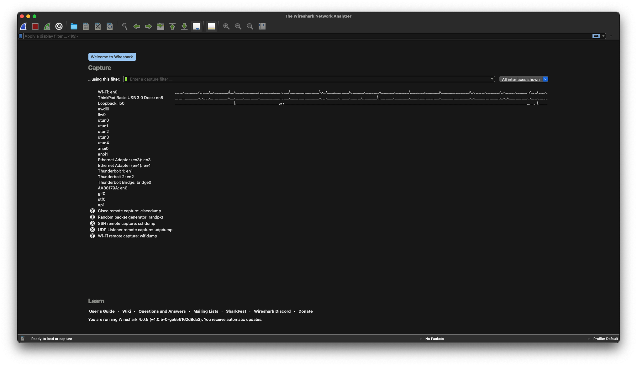 와이어샤크가 패킷을 정상적으로 캡처하기 위해서는 네트워크 통신을 하고 있는 인터페이스를 제대로 선택해야 한다.