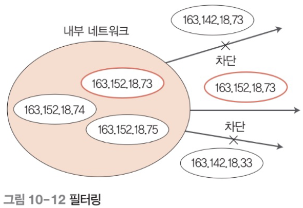 외부 네트워크에서 내부 네트워크로 접근하기 위해서는 반드시 방화벽을 통과하도록 만들어 내부 네트워크의 자원과 정보를 보호하는 기술이다.
