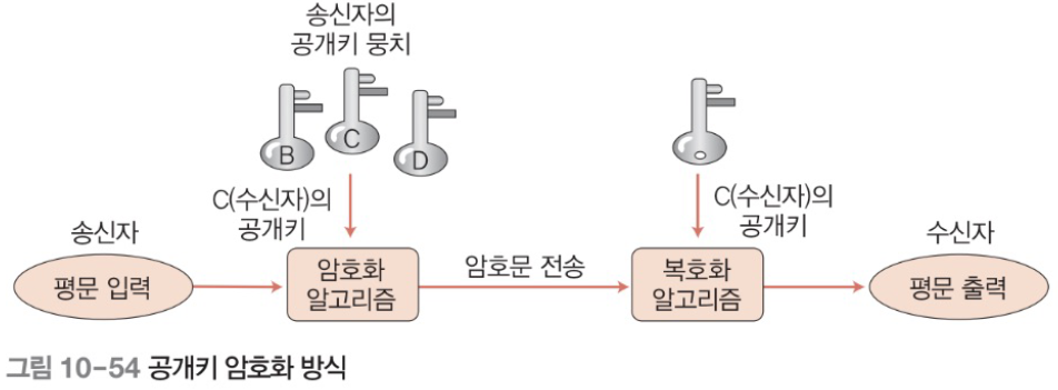 비밀키 암호 시스템이 상대방과 다른 비밀 열쇠를 가지는 방식이라면, 공개키 암호 시스템은 수많은 열쇠들 중에서 골라 잡은 열쇠 1개만 쓰는 방식이다.