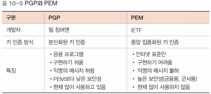 현재 표준으로 쓰이는 이메일 암호화 방식은 PGP, PEM이 있다.