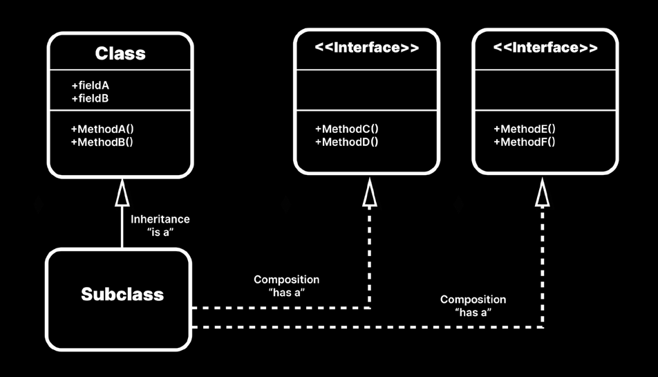 인터페이스 분리 원칙에서 볼 수 있듯이, 인터페이스는 상속의 패러다임에 깔끔하게 맞아떨어지지 않는 상황에서보다 더 유연한 대처가 가능하게 만들어 줍니다. 여러분은 더욱 쉬운 “has a” 관계를 선택해 사용할 수 있죠.