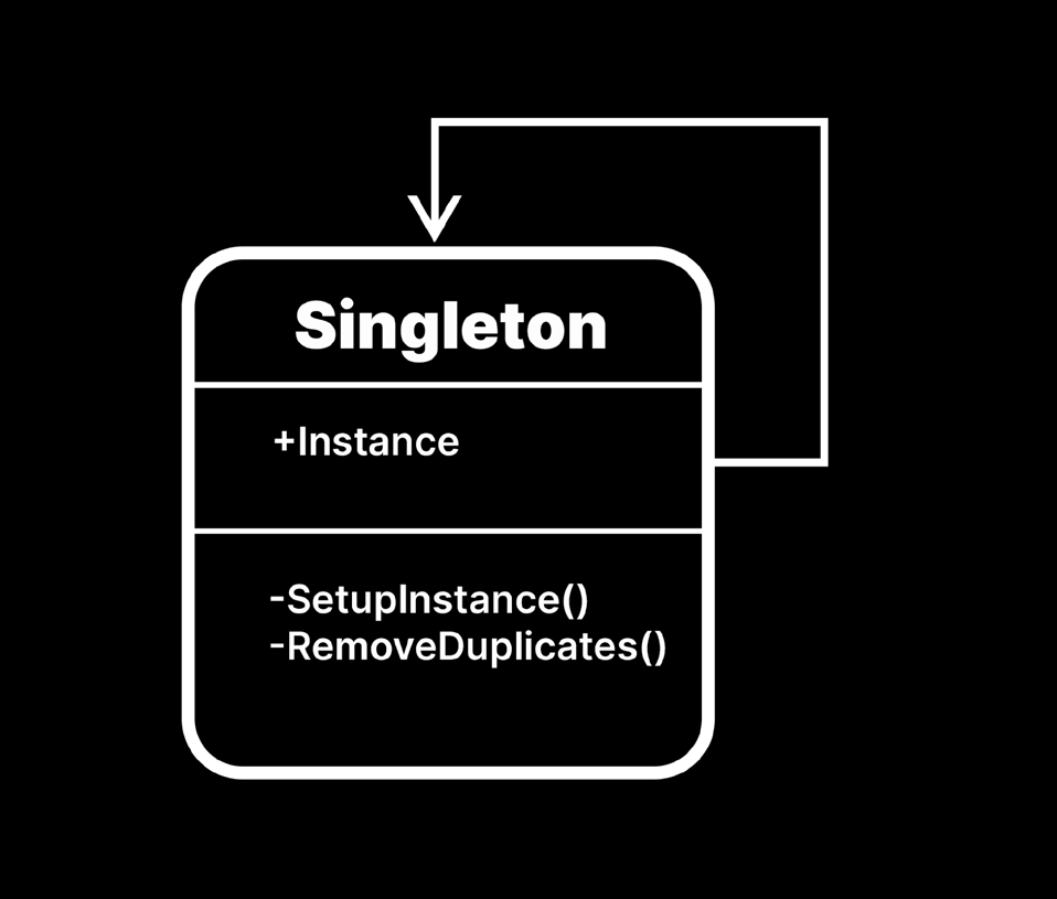 - 하나의 클래스는 오직 자기 자신의 인스턴스 단 하나만 인스턴스화할 수 있습니다.