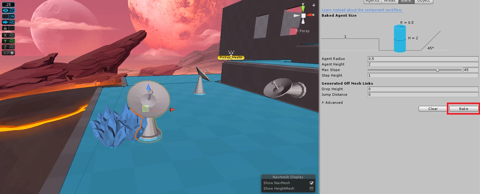 NavMesh를 굽는 방법을 배우시려면, 해당 튜토리얼을 참고해주세요.