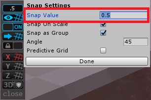 스냅 설정에서 Snap Value 박스 안을 클릭하셔서 그리드 내에서 오브젝트가 스냅 할 단위 값을 조정해주세요.