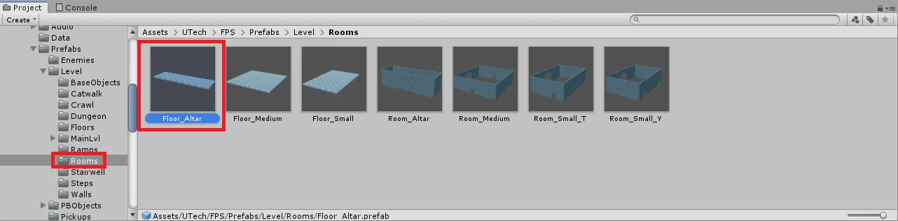 (Assets -> UTech -> FPS -> Prefabs -> Level -> Rooms)