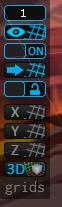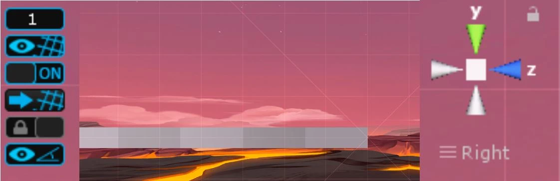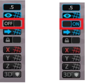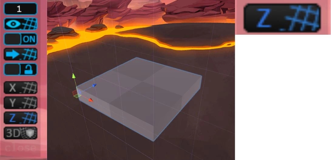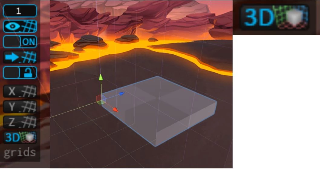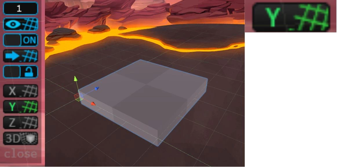 그리드 평면 설정(Set Grid Plane) 버튼은 씬 내에서 오브젝트를 선택할 때 선택한 특정 축을 기반으로 그리드를 렌더링 합니다.