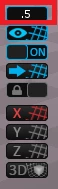 이 토글은 오브젝트의 깊이 또는 Z-축이 보이지 않는 Orthographic 뷰에서 오브젝트를 선택했을 때만 나타나는 토글입니다.