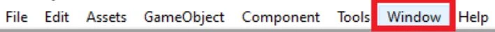 유니티 에디터 툴바에서 "Window" 버튼을 클릭합니다.