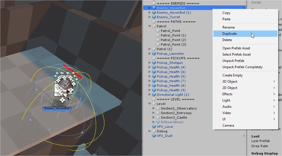 또는 Hierarchy 창에서 기존의 적을 복제하셔도 됩니다: