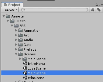 1) Project 창에서 MainScene 씬을 열어주세요.