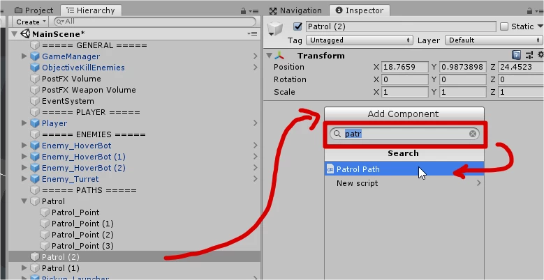 그럼 이제 "Patrol Path" 스크립트가 검색될 것입니다.